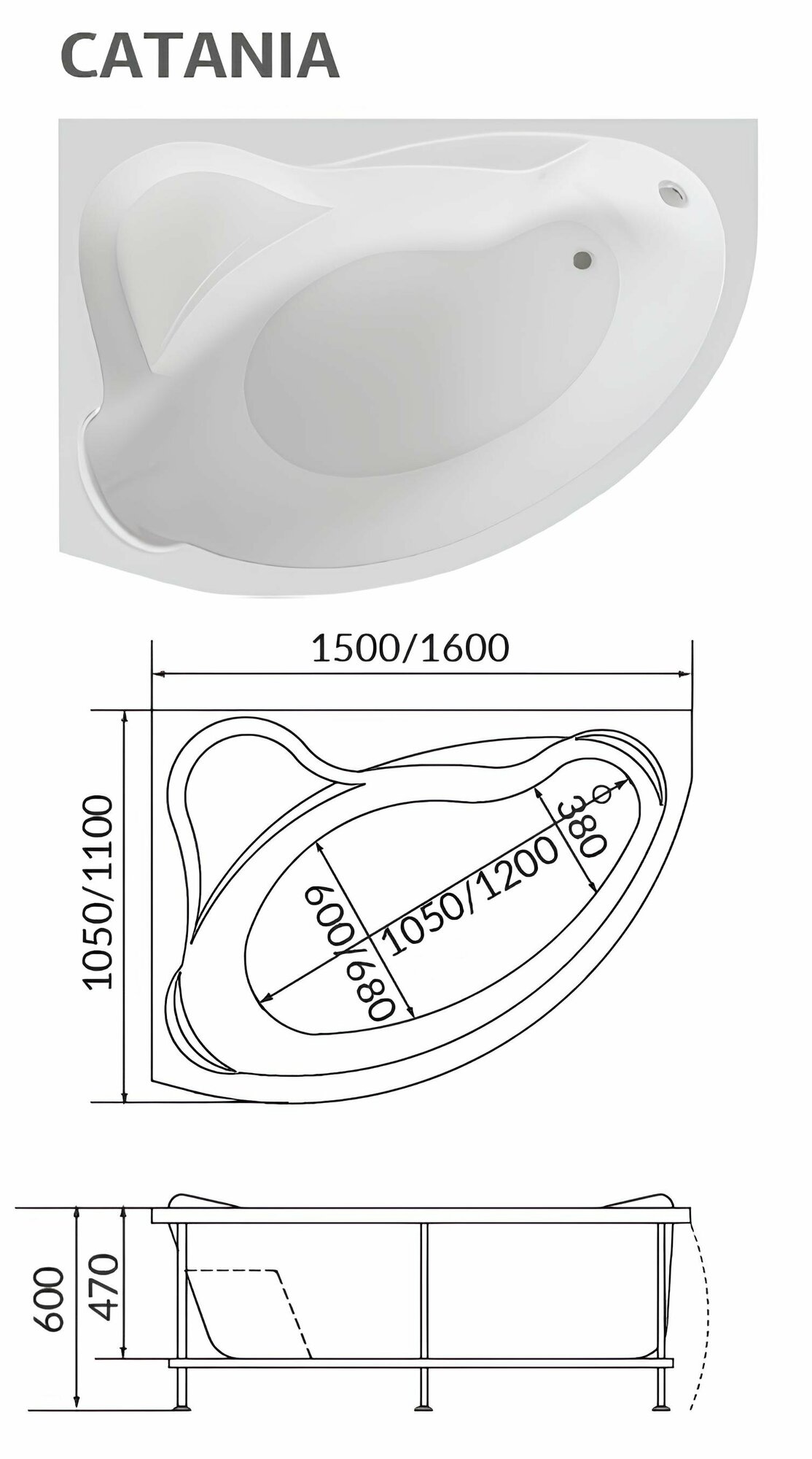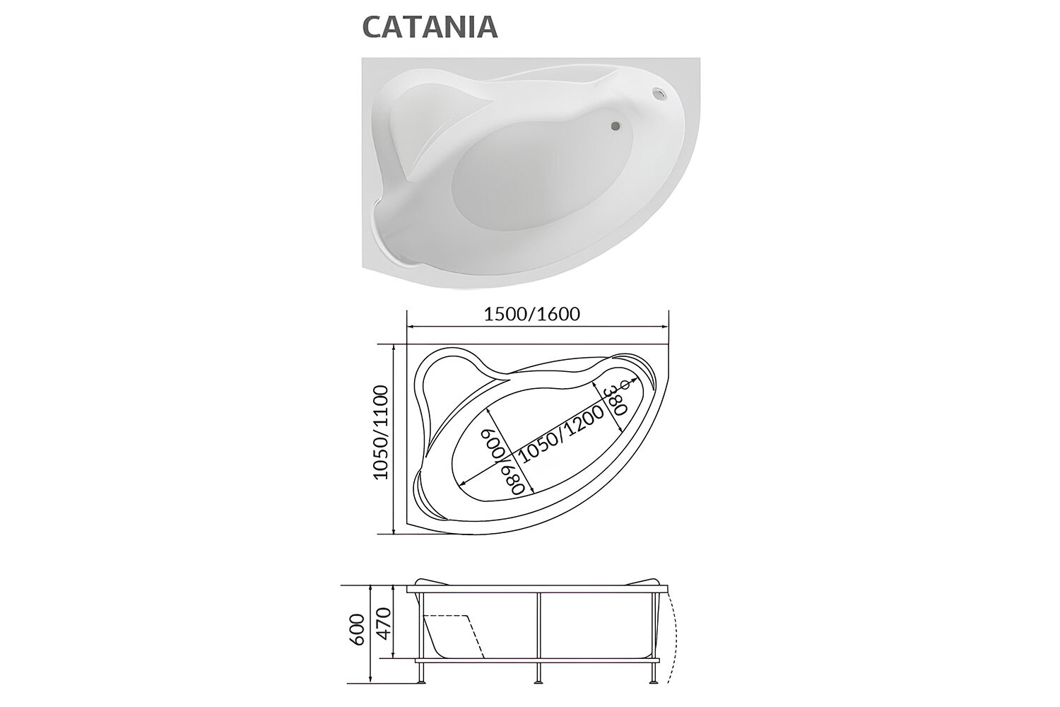 Акриловая угловая ванна 1Marka CATANIA 150х105 см, правосторонняя