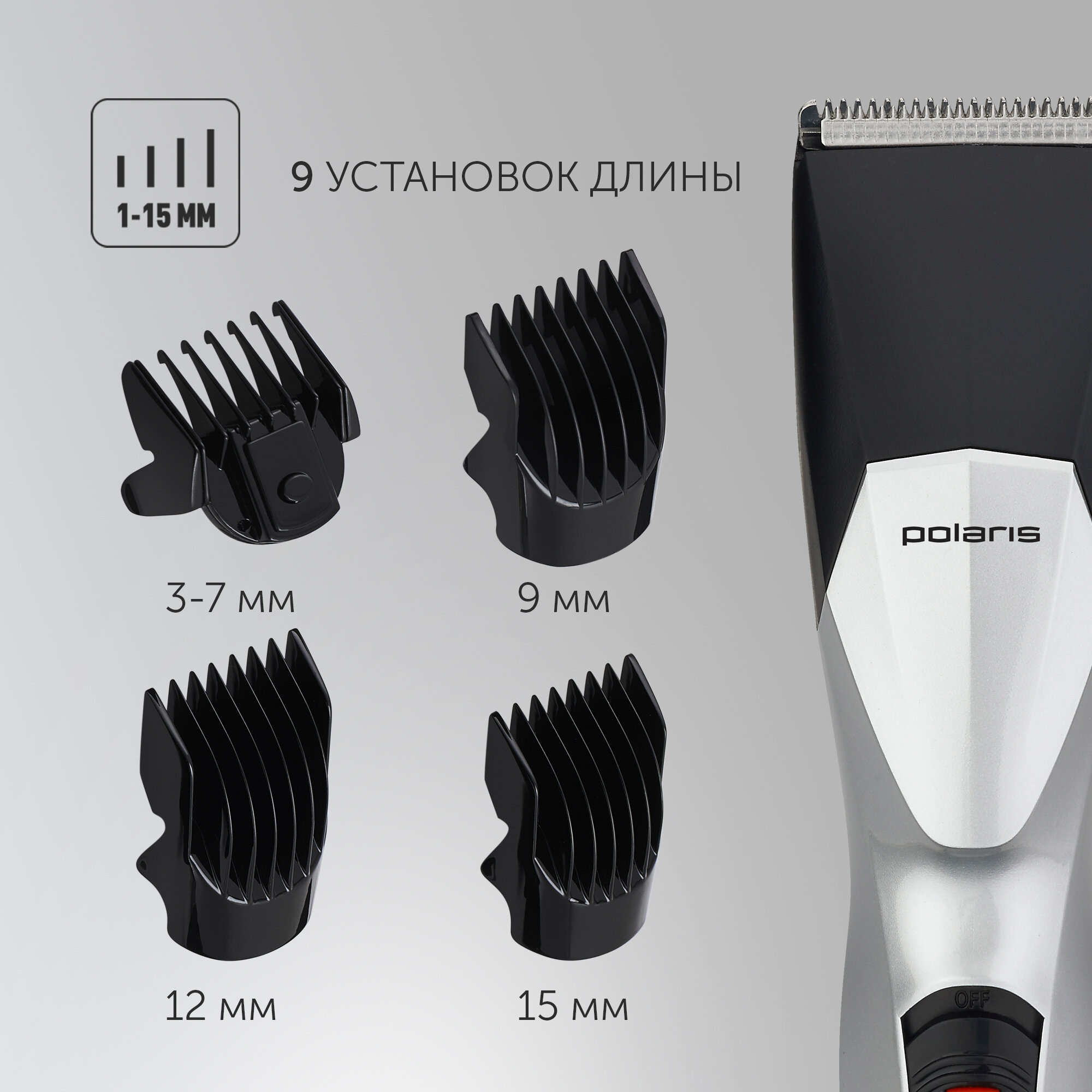 Машинка для стрижки Polaris PHC 1201R черный/серебристый (насадок в компл:5шт) .