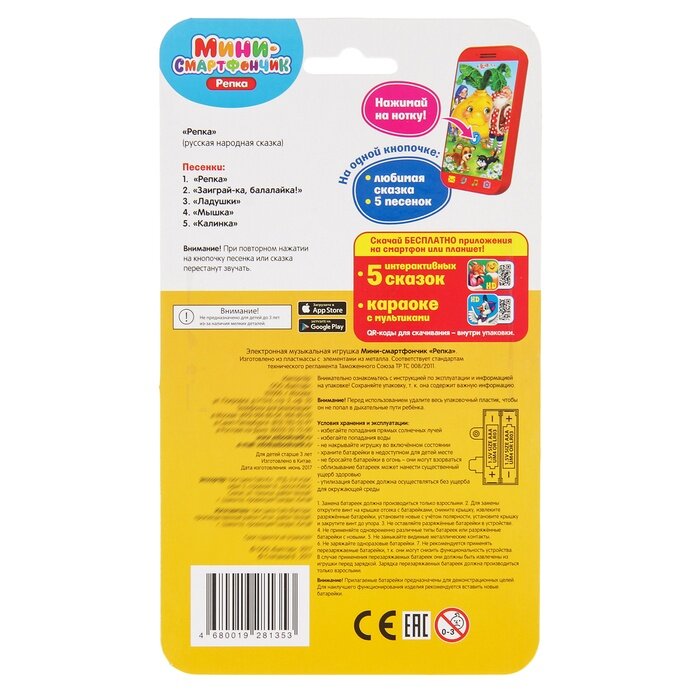 Электронная музыкальная игрушка Мини смартфончик Репка 3+ интересное: