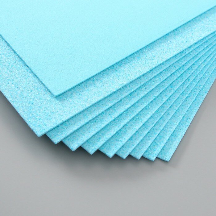 Купить Фоамиран глиттерный 2 мм, 20х30 см, светло-голубой, 10 штук