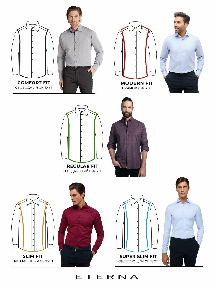 СохранитьМужская рубашка ETERNA 4083-58-E17L white/burgundy 40 интересное:
