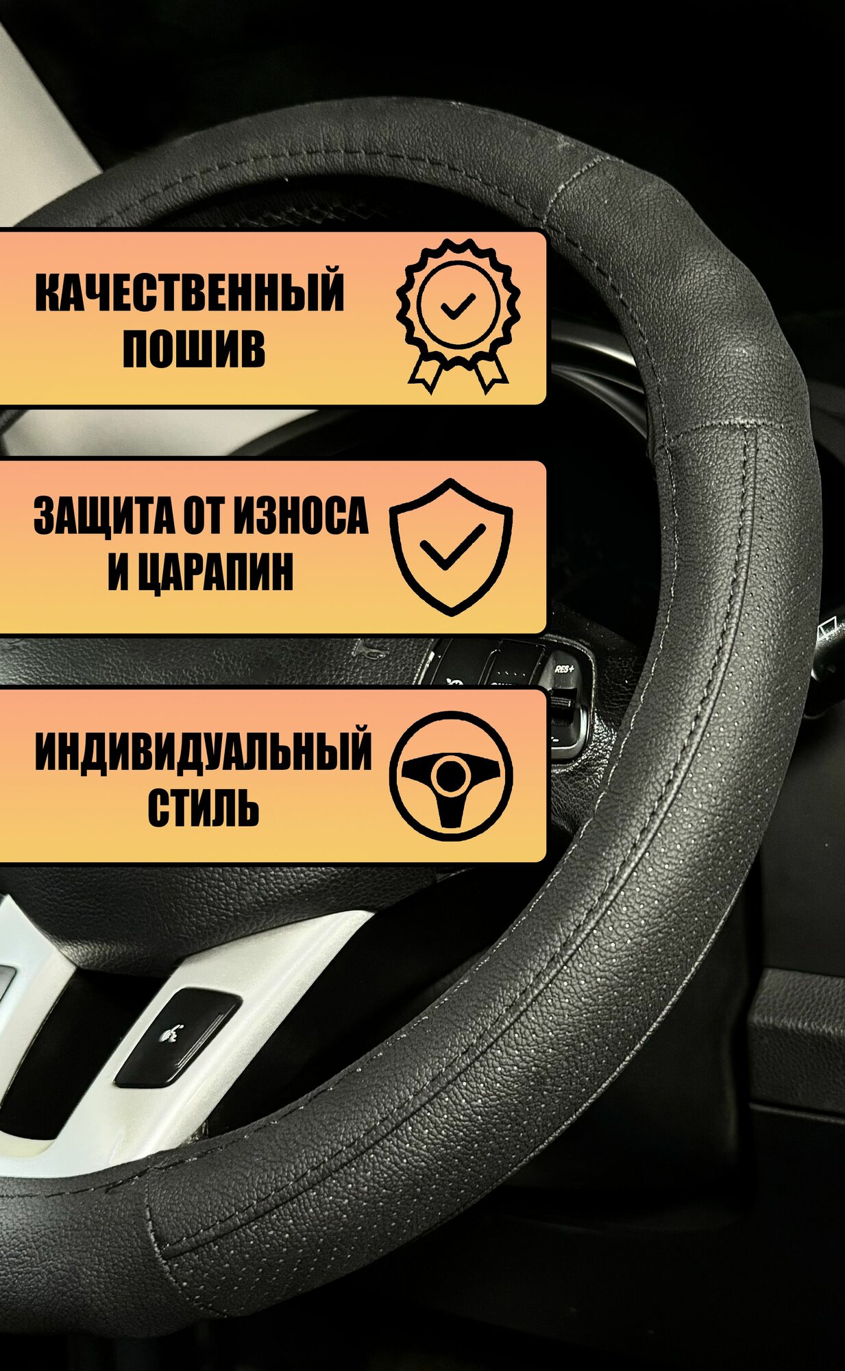 Оплетка, чехол (накидка) на руль Ауди ТТС (2014 - 2018) родстер / Audi TTS, Натуральная кожа, Черный интересное: