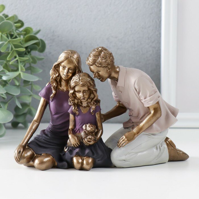 Купить Сувенир полистоун "Родители, я и наш щенок" бронза, фиолетовый 17,5х7,5х12 см