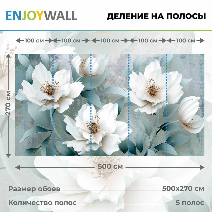 Купить Фотообои 500х270 на стену бумажные Цветы 3d для гостиной, спальни, кухни, детской, кабинета, фотопанно