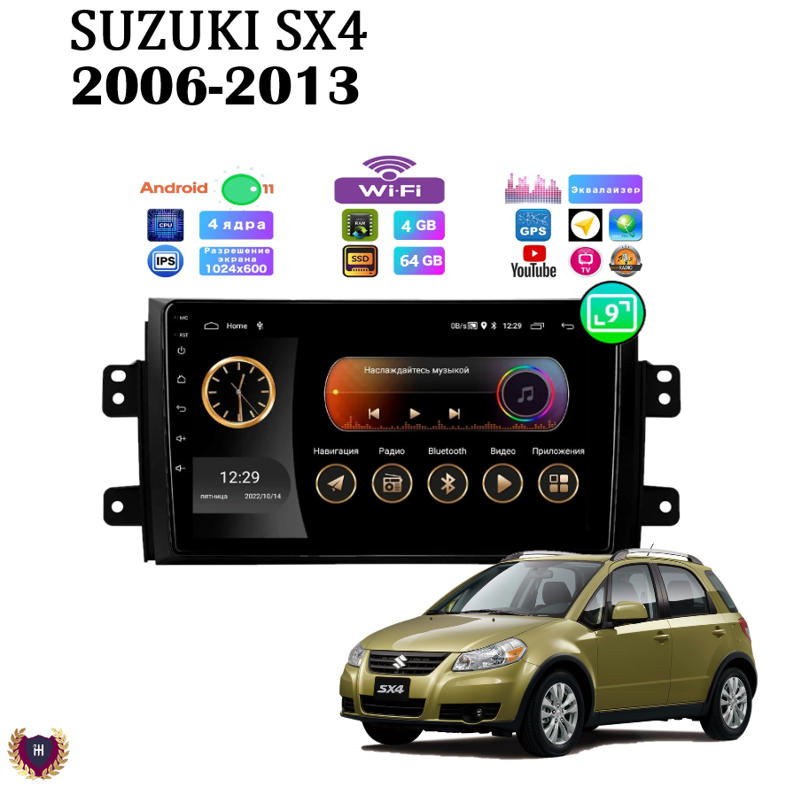 Автомагнитола для Suzuki SX4 (2006-2013), Android 11, 4/32Gb, Wi-Fi, GPS, IPS экран, Bluetooth, Hands Free, разделение экрана, поддержка кнопок на руле