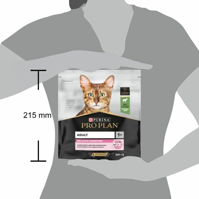Сухой корм Pro Plan для взрослых кошек с чувствительным пищеварением или с особыми предпочтениями в еде, с высоким содержанием ягненка 400 г х 1 шт