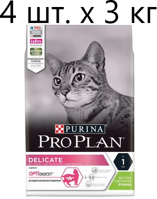 Купить PRO PLAN CAT DELICATE DIGESTION LAMB для взрослых кошек с чувствительным пищеварением с ягненком (3 кг х 4 шт)