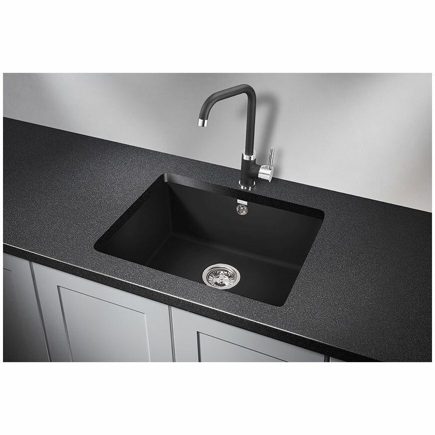 Кухонная мойка кварцевая Granula GR-5551 квадратная подстольная односекционная, подстольная, чаша 500х380, цвет черный (5551bl)