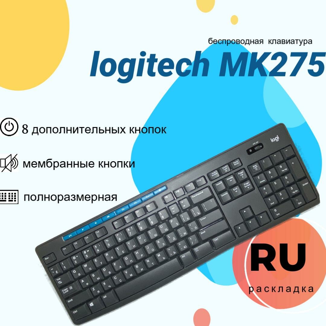 Беспроводной комплект Logitech MK275 - клавиатура + мышь, черный с голубым