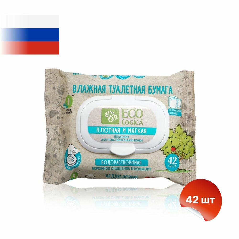 Туалетная бумага влажная Ecologica биоразлагаемая 42 штуки интересное: