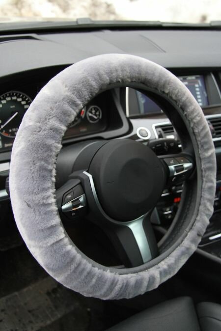 Оплетка на руль Пежо 308 (2011 - 2015) кабриолет / Peugeot 308, искусственный мех (высокого качества), Серый интересное: