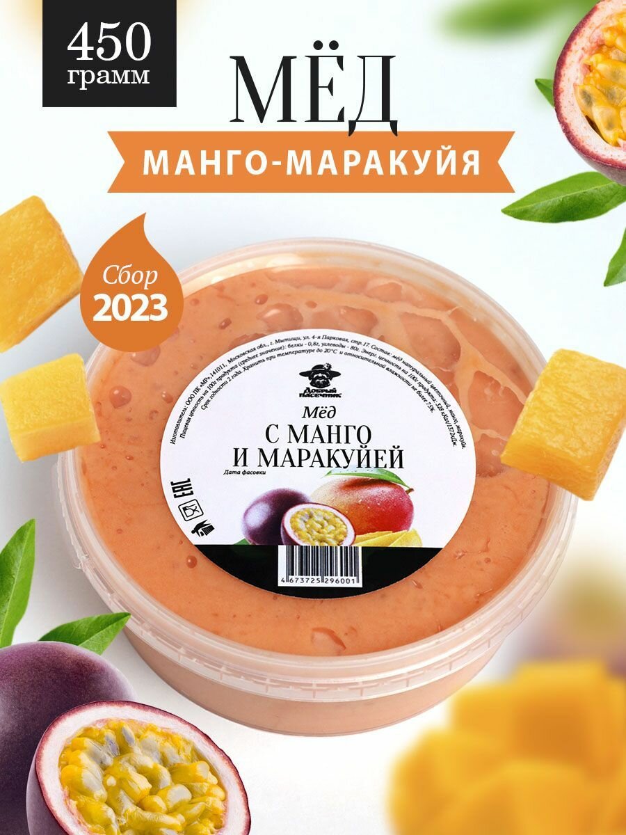 Купить Мед манго-маракуйя 450 г, полезный подарок, для иммунитета
