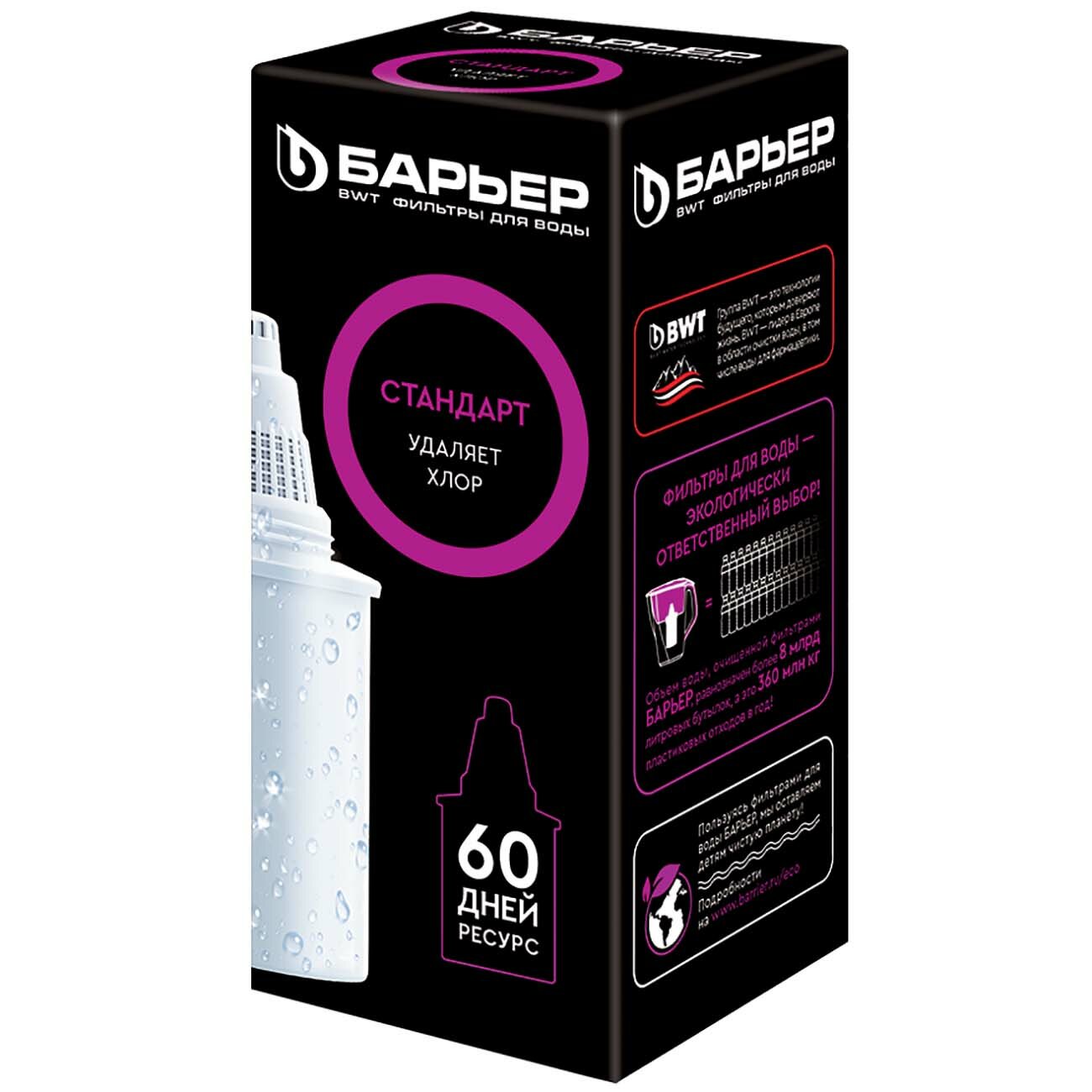 БАРЬЕР Стандарт, комплект кассет для фильтров-кувшинов, удаляет хлор, 2 шт