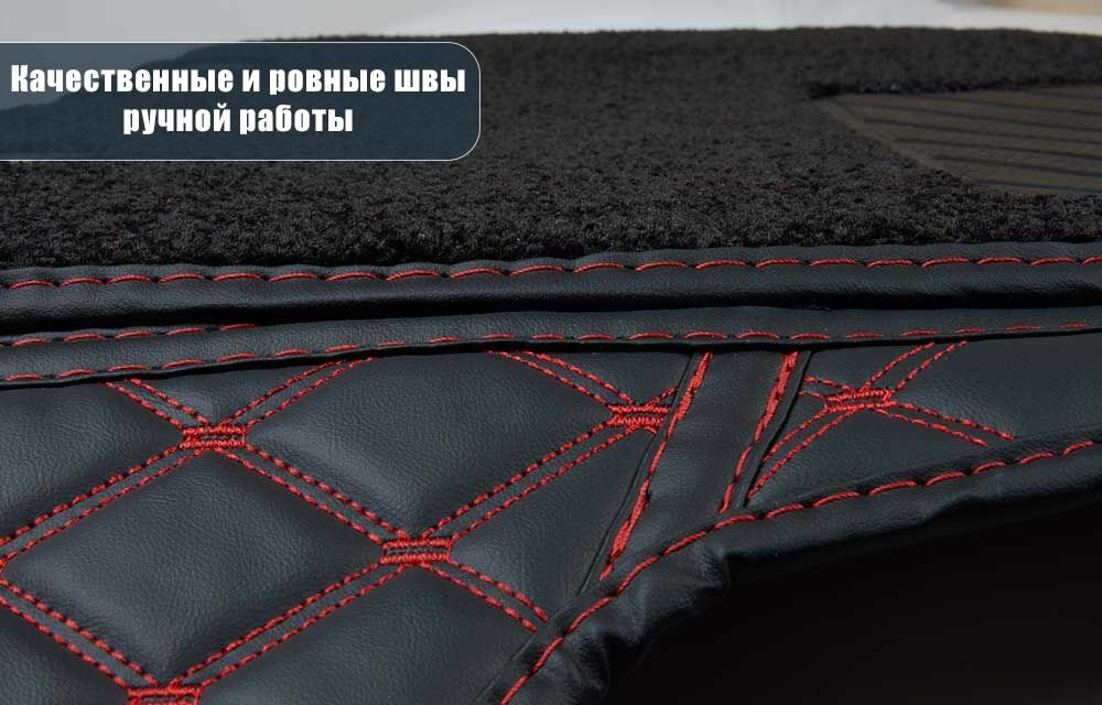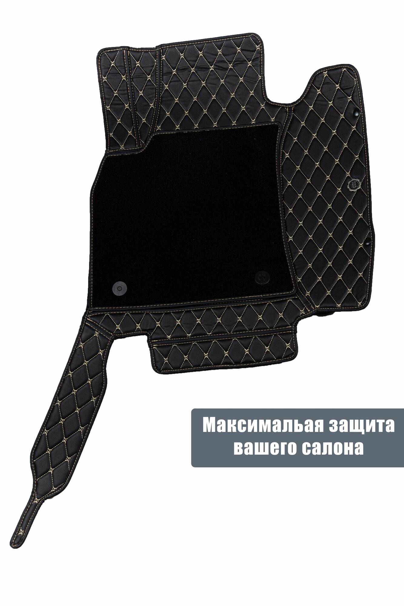 Коврики для Чери Тигго 7 (2019-2024). Автоковрики, полики Chery Tiggo 7, экокожа со съемным текстилем 3D/5D, черный с бежевой строчкой интересное: