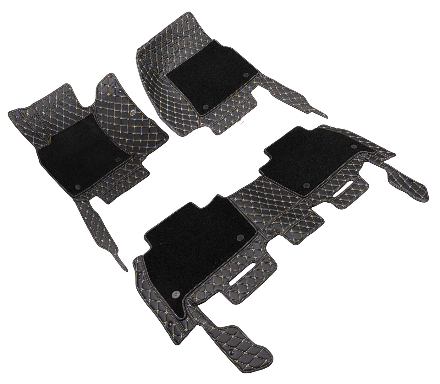 Купить Коврики для Чери Тигго 7 (2019-2024). Автоковрики, полики Chery Tiggo 7, экокожа со съемным текстилем 3D/5D, черный с бежевой строчкой