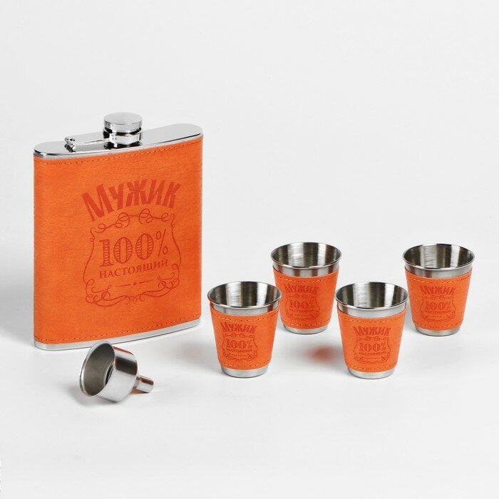 Подарочный набор 6 в 1 "100% мужик": фляжка 540 мл, 4 стопки по 70 мл, воронка интересное: