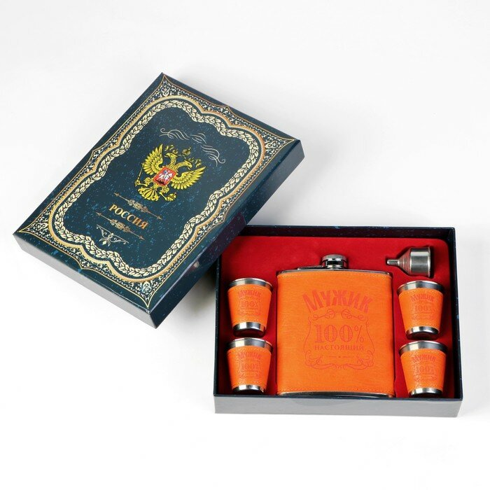 Ниже Вы можете прочитать отзывы на Подарочный набор 6 в 1 "100% мужик": фляжка 540 мл, 4 стопки по 70 мл, воронка, ознакомится с подробными характеристиками, посмотреть интересные обзоры и фотографии на Подарочный набор 6 в 1 "100% мужик": фляжка 540 мл, 4 стопки по 70 мл, воронка.