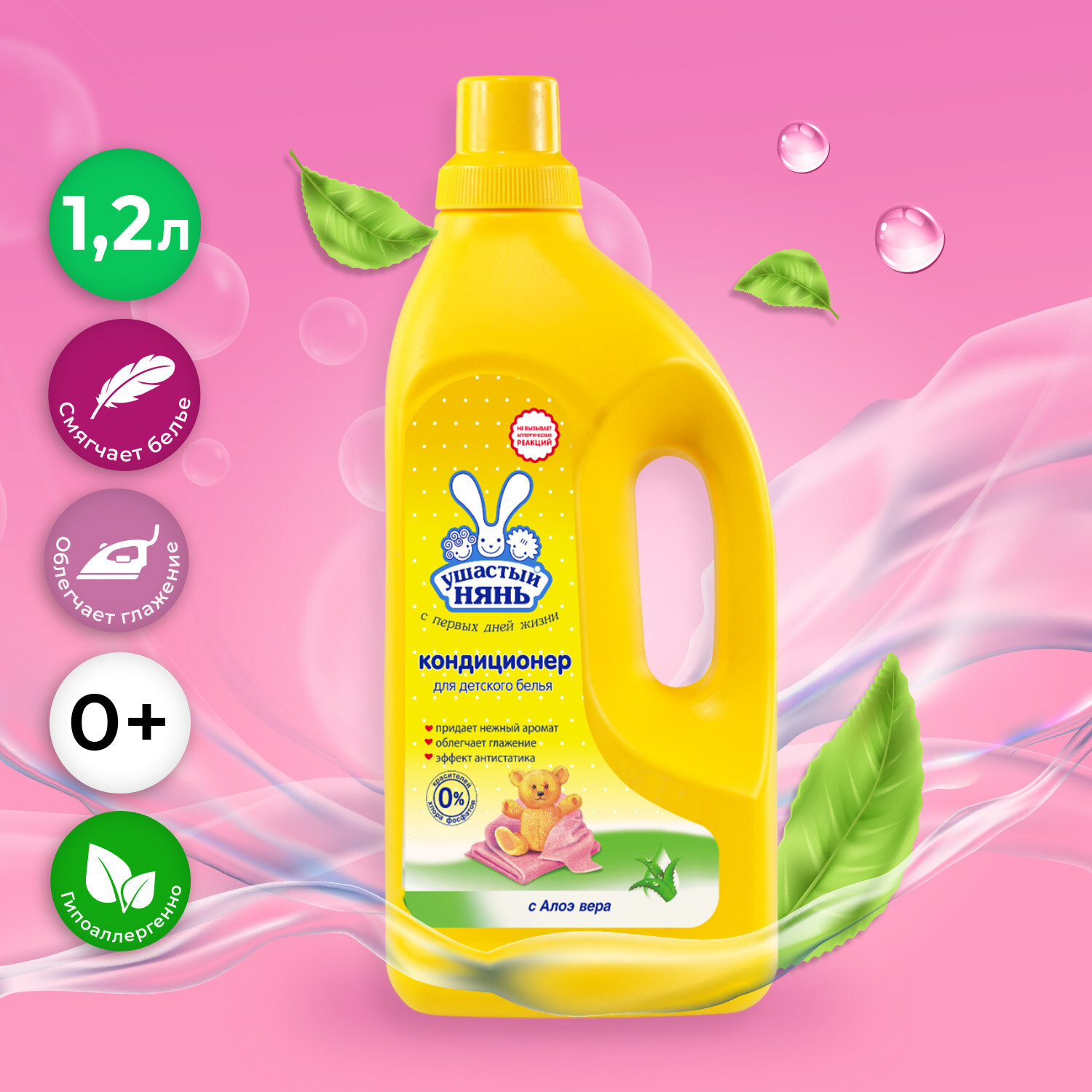 Кондиционер для детского белья, Ушастый нянь, с Алоэ вера, 1 л