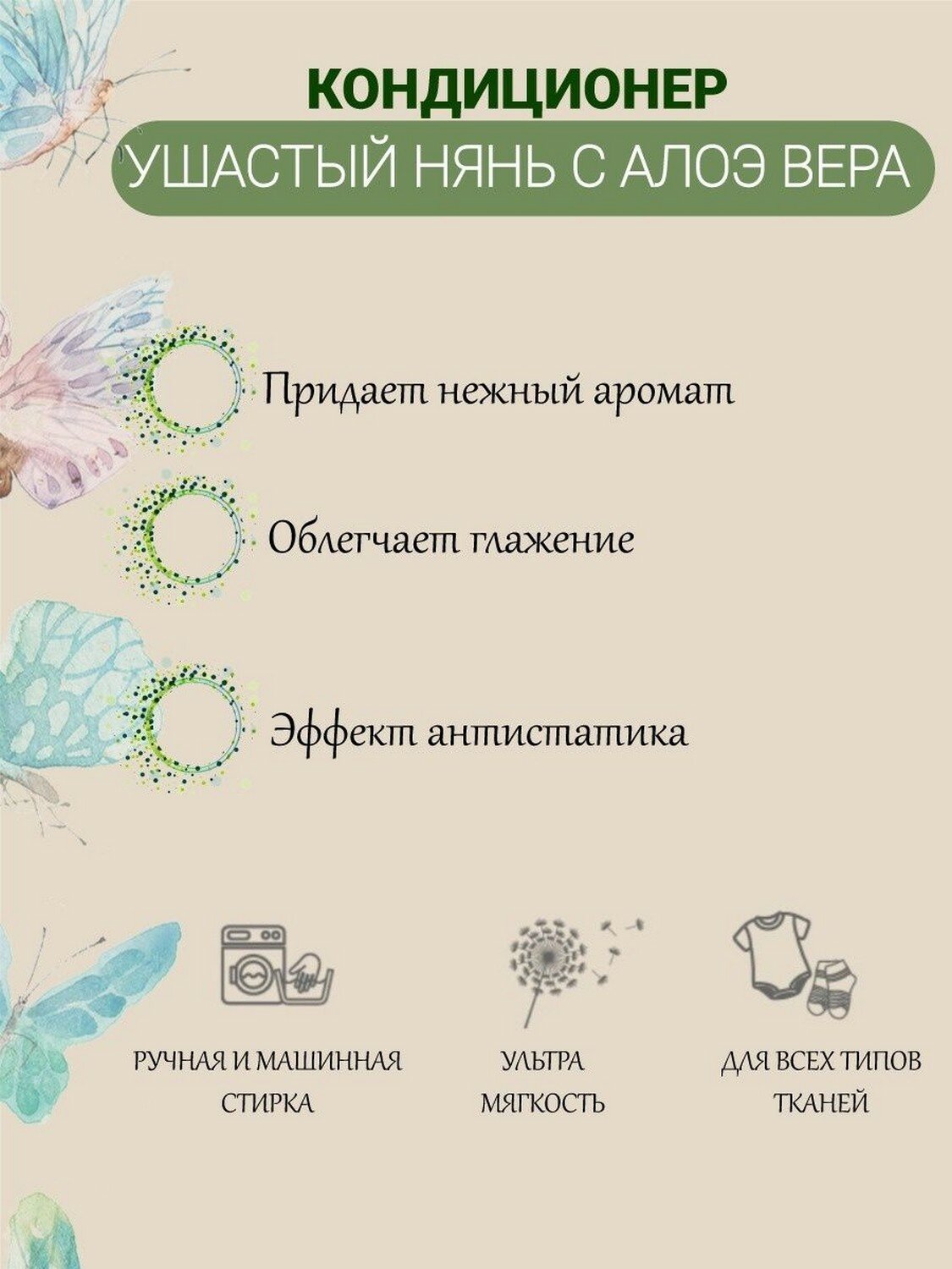 Качественное исполнение. Создает некую защиту от статического электричества. Придает аромат чистоты. Делает вещи мягкими. Недостатки: Цена может кусаться. Кондиционер с алоэ вера подходит для ухода за одеждой при ее стирке. |