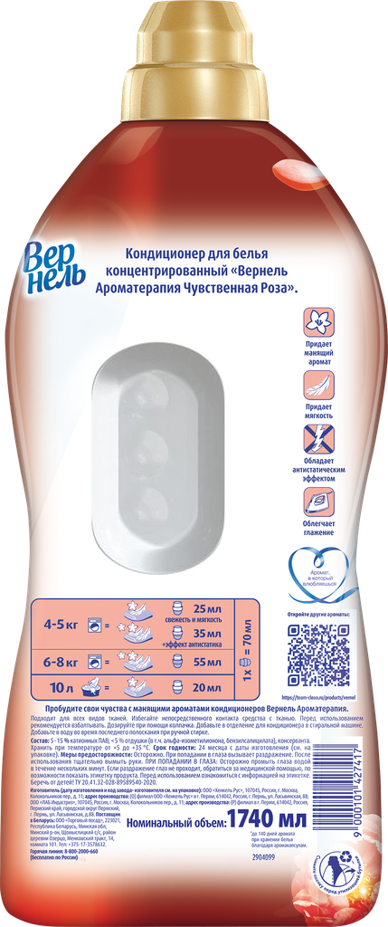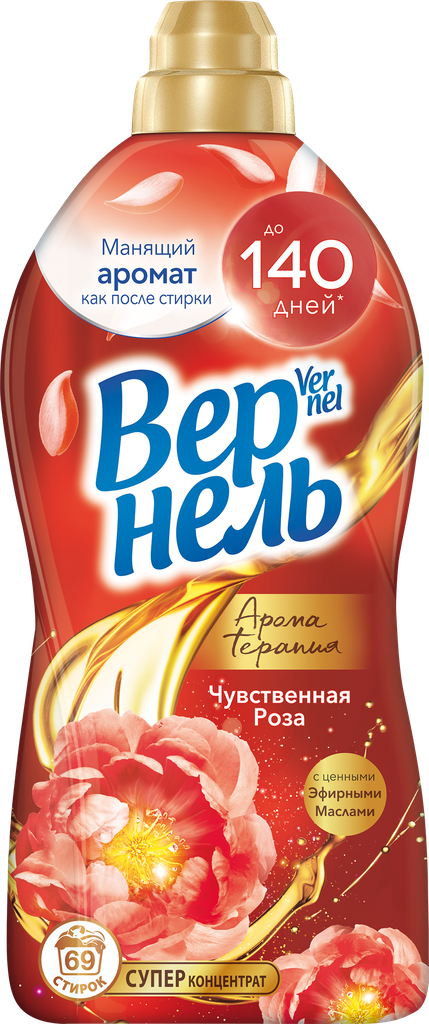 Вернель Концентрированный кондиционер ополаскиватель для белья Ароматерапия Чувственная роза, 1,74 л