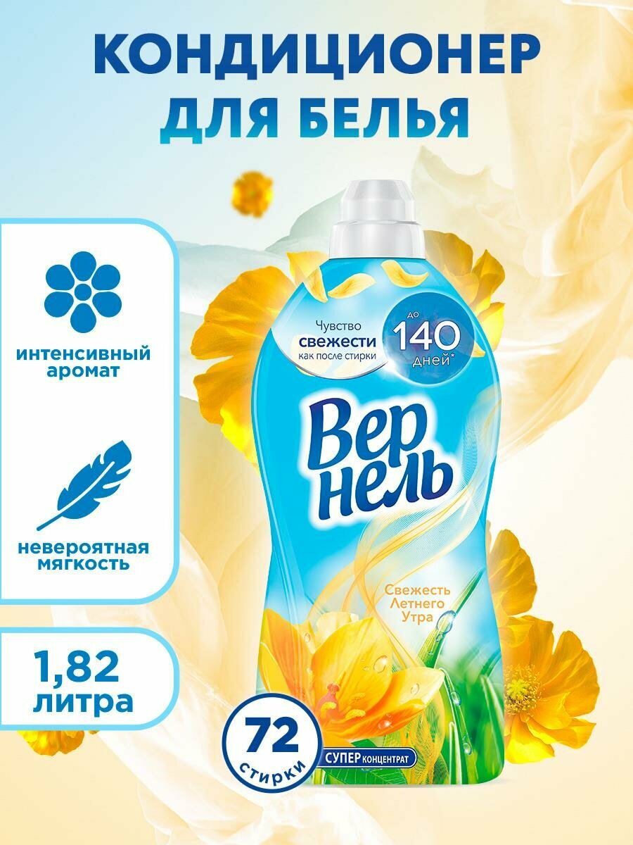 Купить Вернель Концентрированный кондиционер-ополаскиватель для белья Свежесть летнего утра, 1.82 л