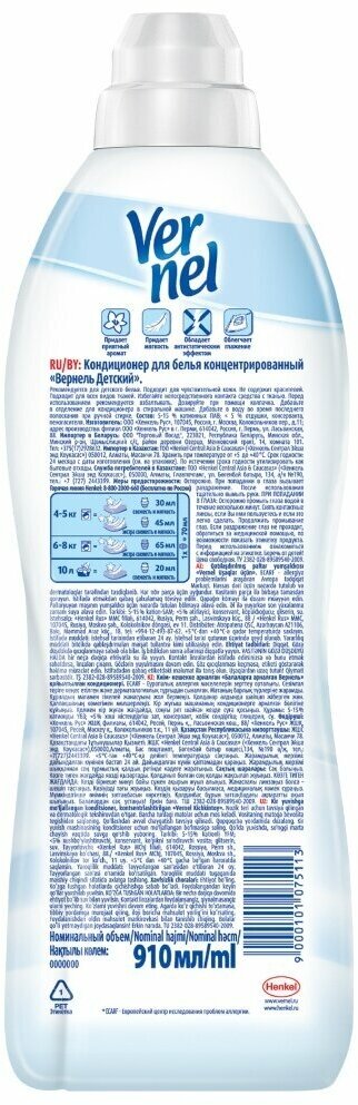 Купить Кондиционер для белья суперконцентрат Vernel Детский, 910 мл G-KD-399770003
