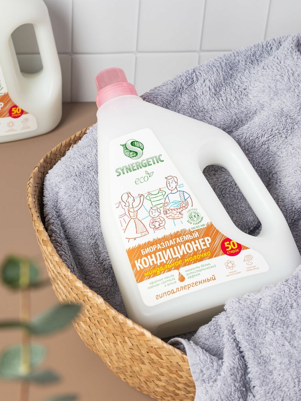 Кондиционер-ополаскиватель для белья SYNERGETIC "Миндальное молочко" гипоаллергенный, 1,5л, 50 стирок