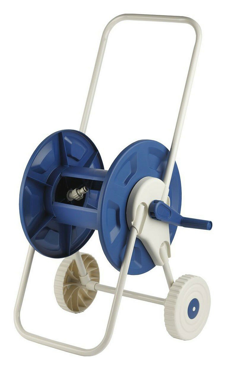 | Минусы: | Конструкция тележки хлипкая и ненадёжная в местах соединения металла с пластиковыми деталями, шланг 3/4 не походит для этой катушки, только 1/2 и подобные да и цена сильно завышена. Нет фиксатора торможения катушки, шланг разматывается. |