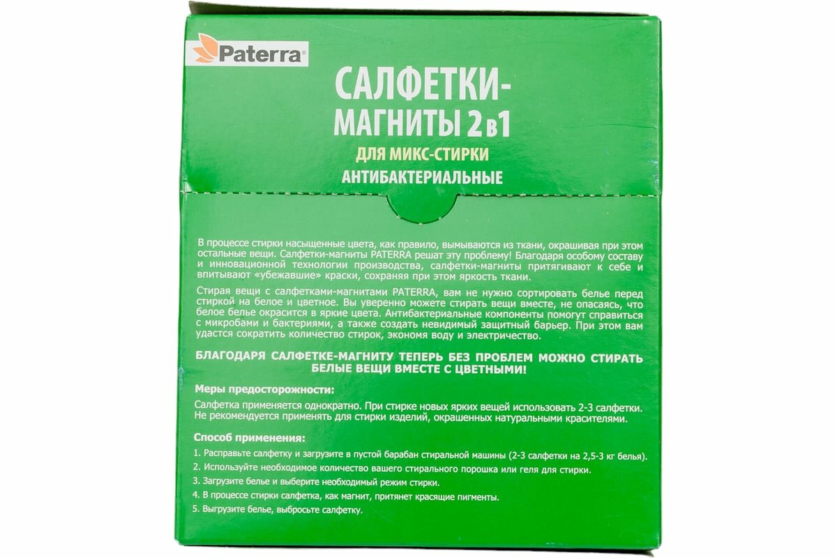 Купить Салфетки-магниты 2в1 для микс-стирки антибактериальные PATERRA, 30шт. в уп.,