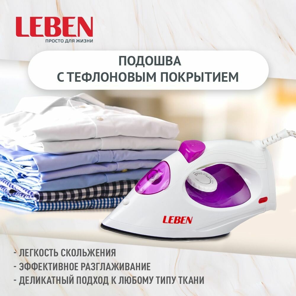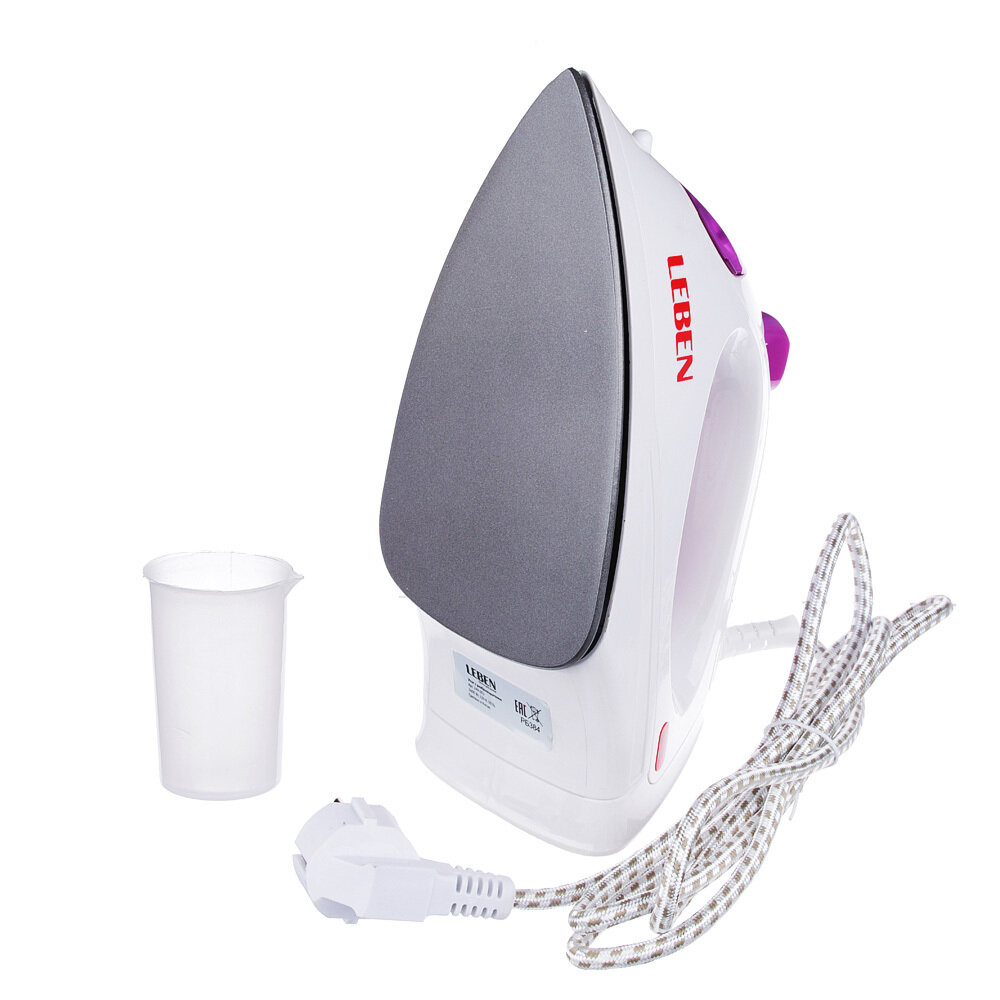 Утюг LEBEN 1600 Вт, подошва тефлон, белый/фиолетовый 249-002
