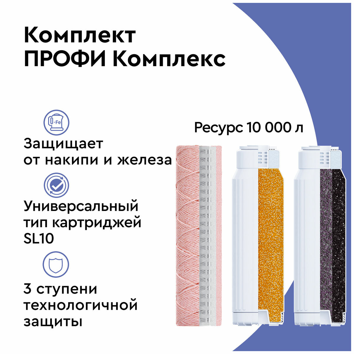 БАРЬЕР Р143Р00 Комплект картриджей для фильтра под мойкой Профи Комплекс, 1 уп, 3 шт.