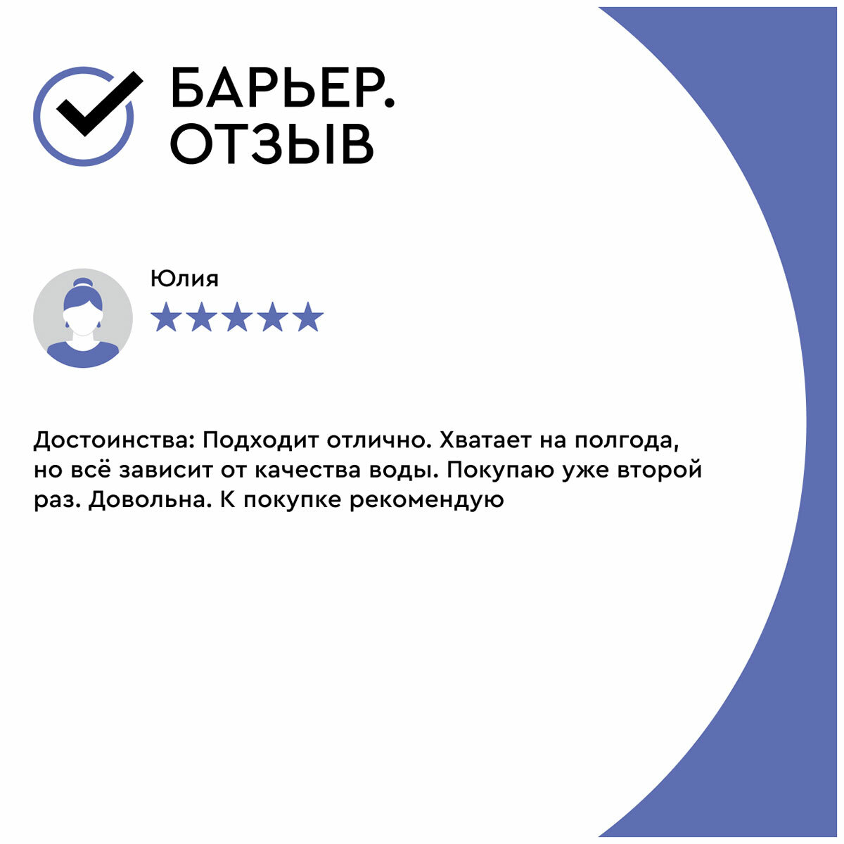 | Отзыв: | Однозначно рекомендую, вода по органолептическим показателям и по солям накипи получается на высоком уровне. |