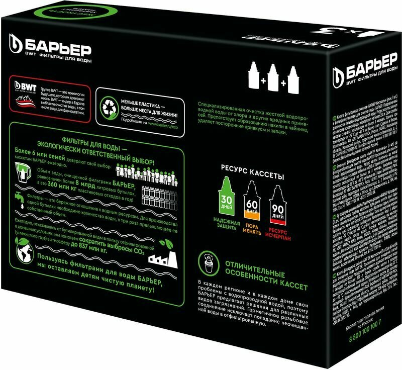 БАРЬЕР Жесткость, комплект кассет для фильтров-кувшинов, защищает от накипи, 3 шт