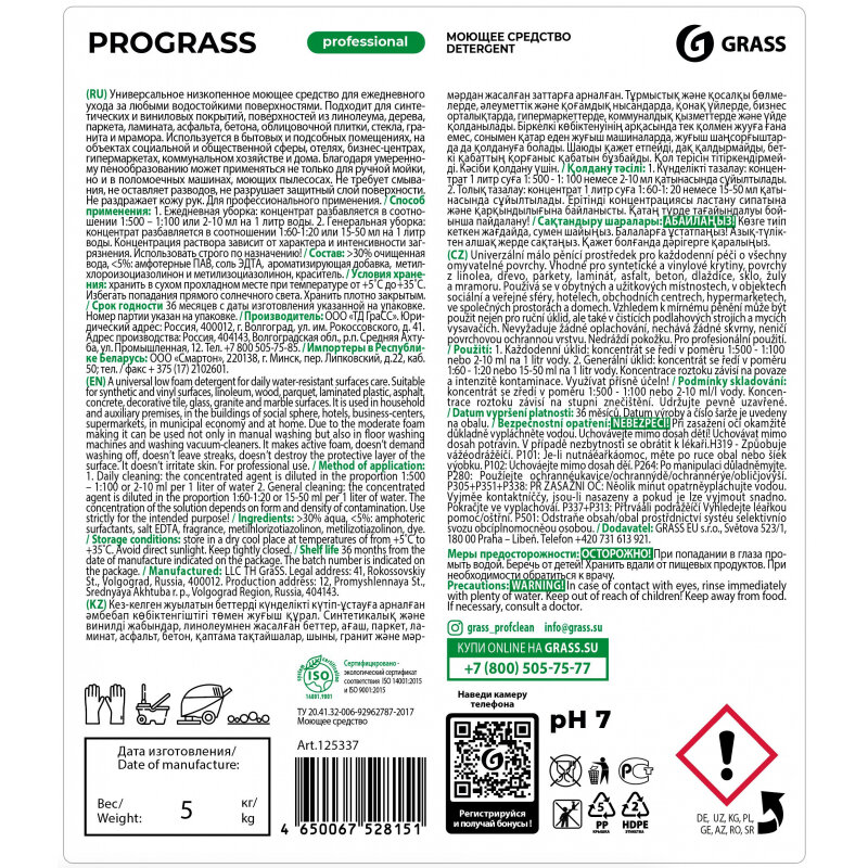 Средство моющее универсальное 5кг GRASS PROGRASS, нейтральное, жидкое, ш/к 28151
