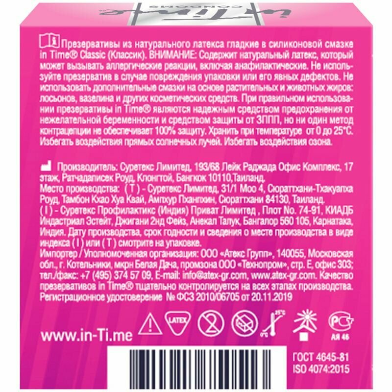 Презервативы Ин Тайм классические x3 Атекс Групп