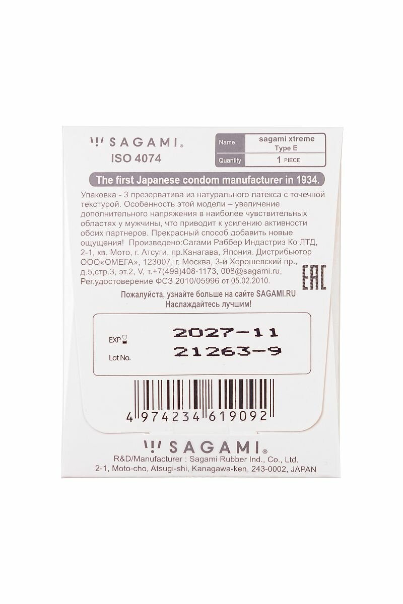 Презерватив Sagami Xtreme Type-E с точками - 1 шт. интересное: