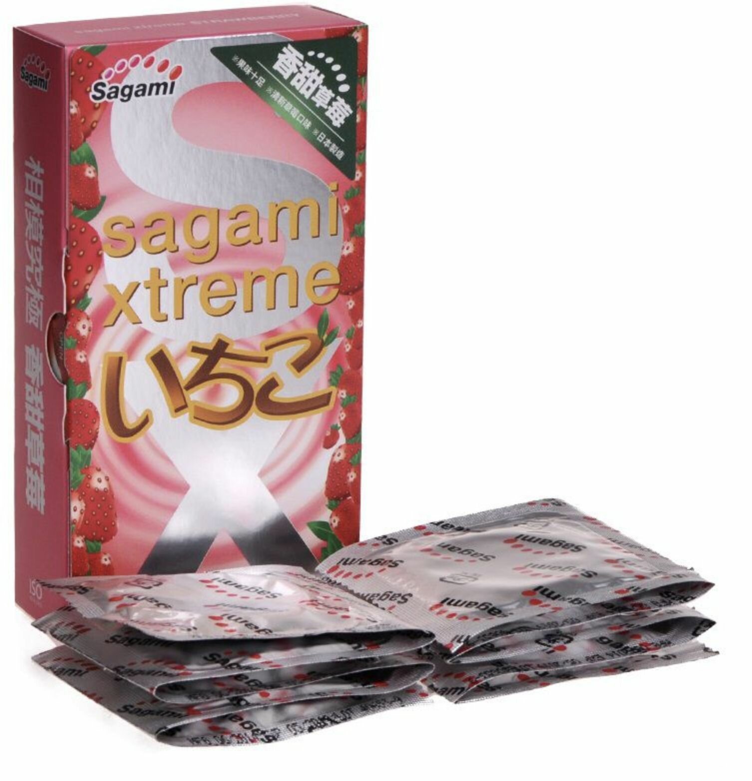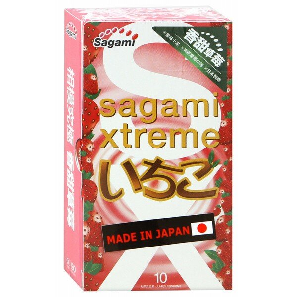 743 Sagami Xtreme Strawberry, 10 шт. Презервативы ультратонкие, с ароматом клубники. Упаковка по 10 шт.