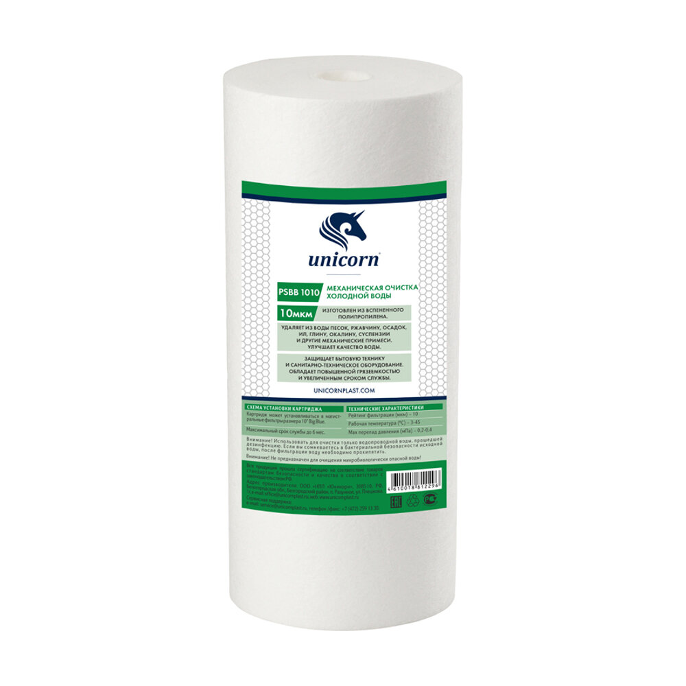 сантехника (UNICORN Картридж механический из вспененного полипропилена 10" 10 микрон РS 1010 S)