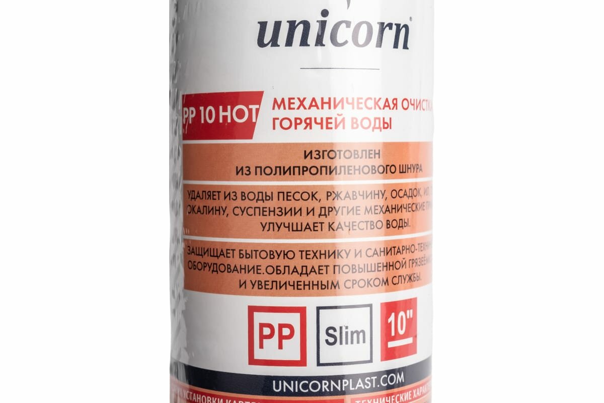 Механический картридж Unicorn из полипропиленового шнура, на горячую воду, 10'', 5 мкм, РР 1005 Hot .