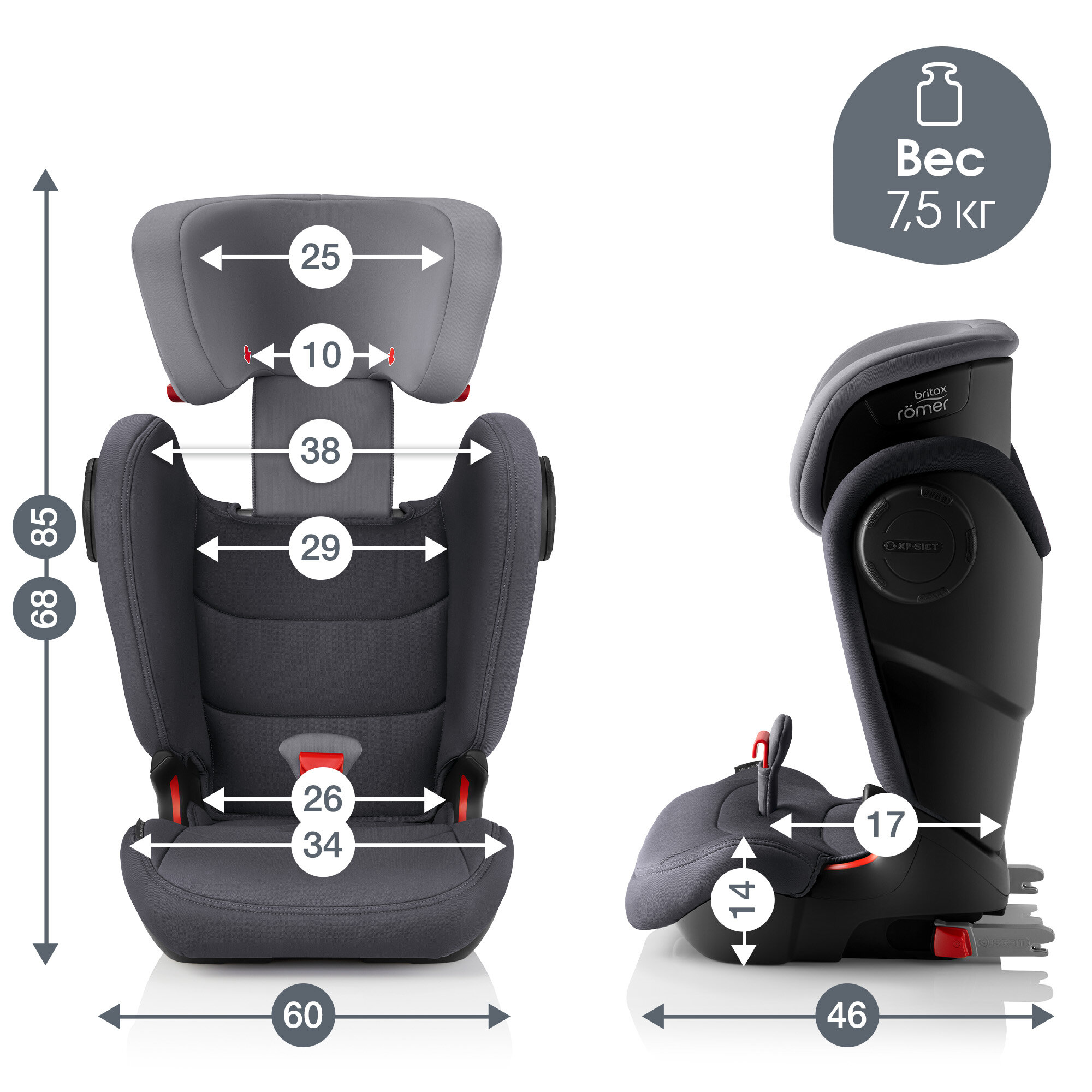 Купить Автокресло детское Britax Roemer Kidfix III M группы 2/3, для детей от 3,5 до 12 лет и весом 15 - 36 кг, с isofix, серый