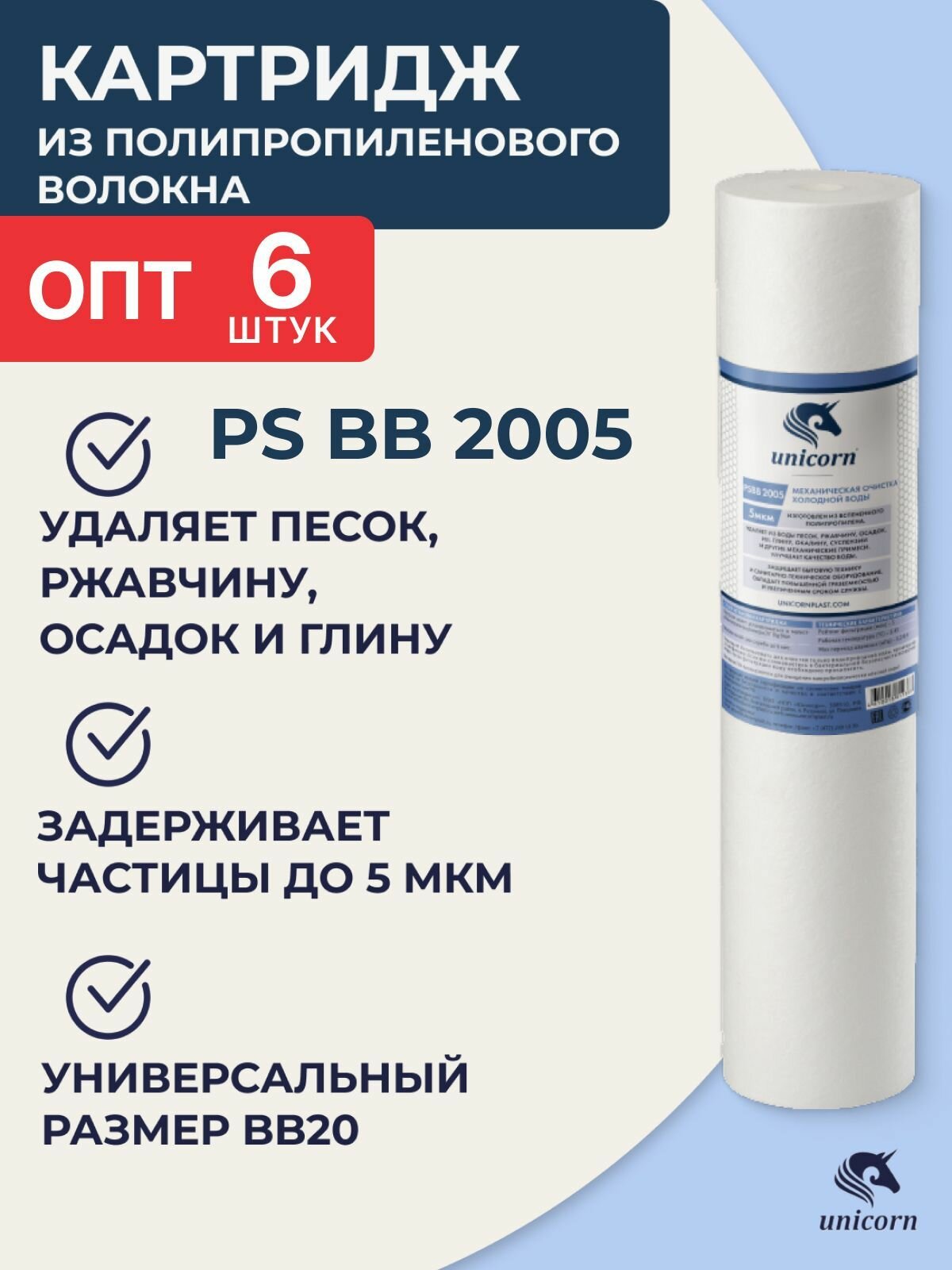 Unicorn Картридж для механической очистки воды 20BB 5МКМ РS ВВ 2005