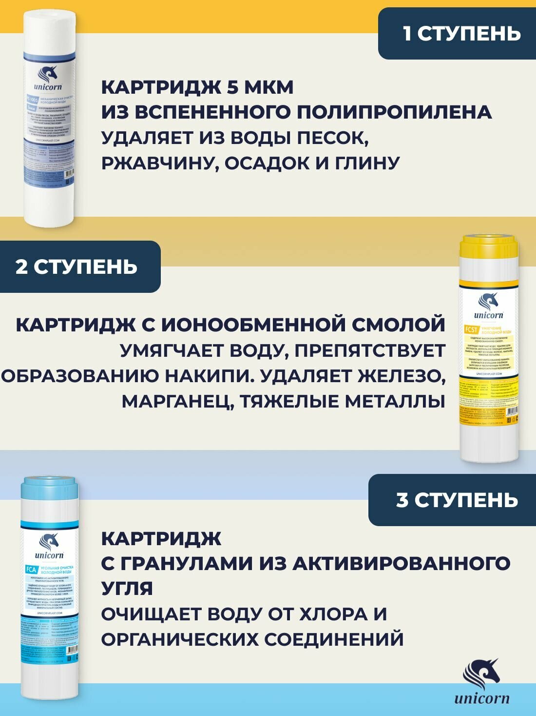 Комплект сменных картриджей очистки воды Unicorn K-ST "Умягчение"