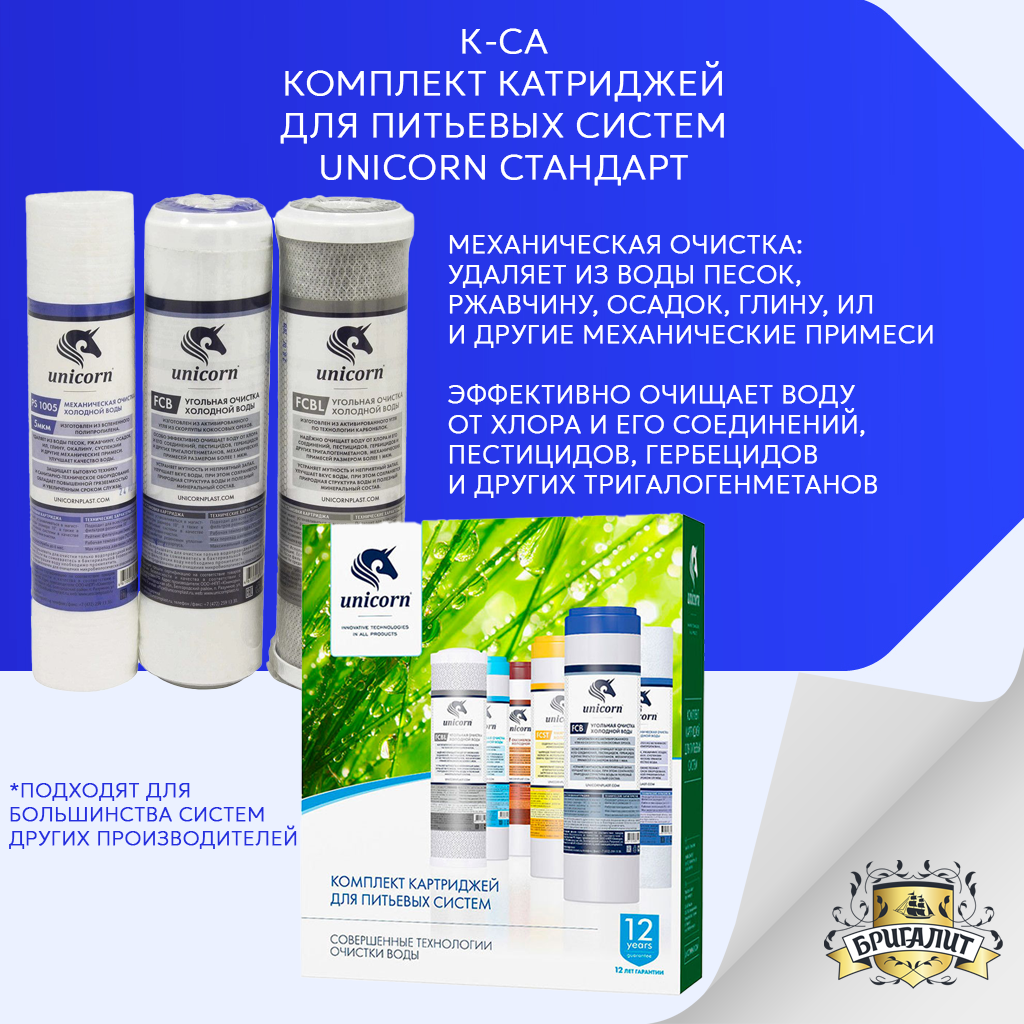 Комплект картриджей Unicorn K-CA, стандартная очистка (PS-10. FCA-10. FCBL-10) Unicorn 2629593