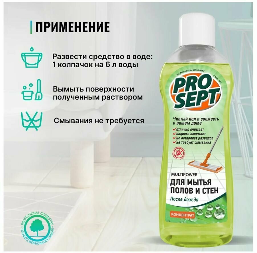Концентрат для мытья полов и стен Prosept Multipower "После дождя", 800 мл