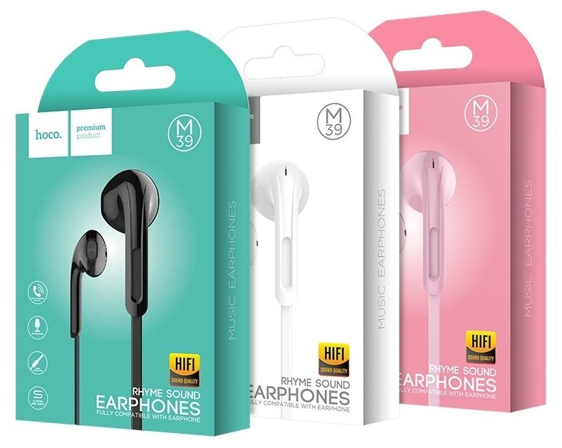 Наушники M39 Rhyme sound earphones with microphone, HOCO, черные