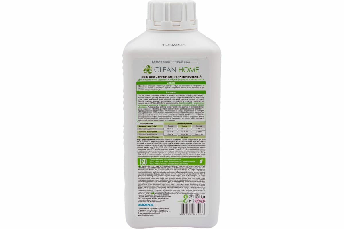 CLEAN HOME Гель для стирки антибактериальный для спортивной одежды и обуви формула "Антизапах" 1л