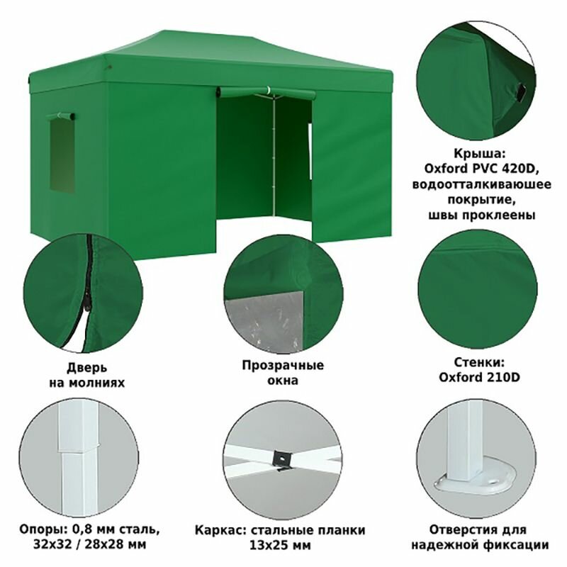 Купить Тент-шатер быстросборный Helex 4336, 3x4,5х3м полиэстер зеленый