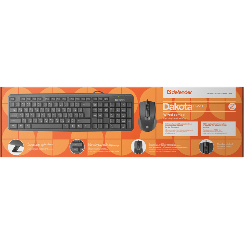 Комплект (клавиатура + мышь) проводной DEFENDER Dakota C-270 RU (45270)