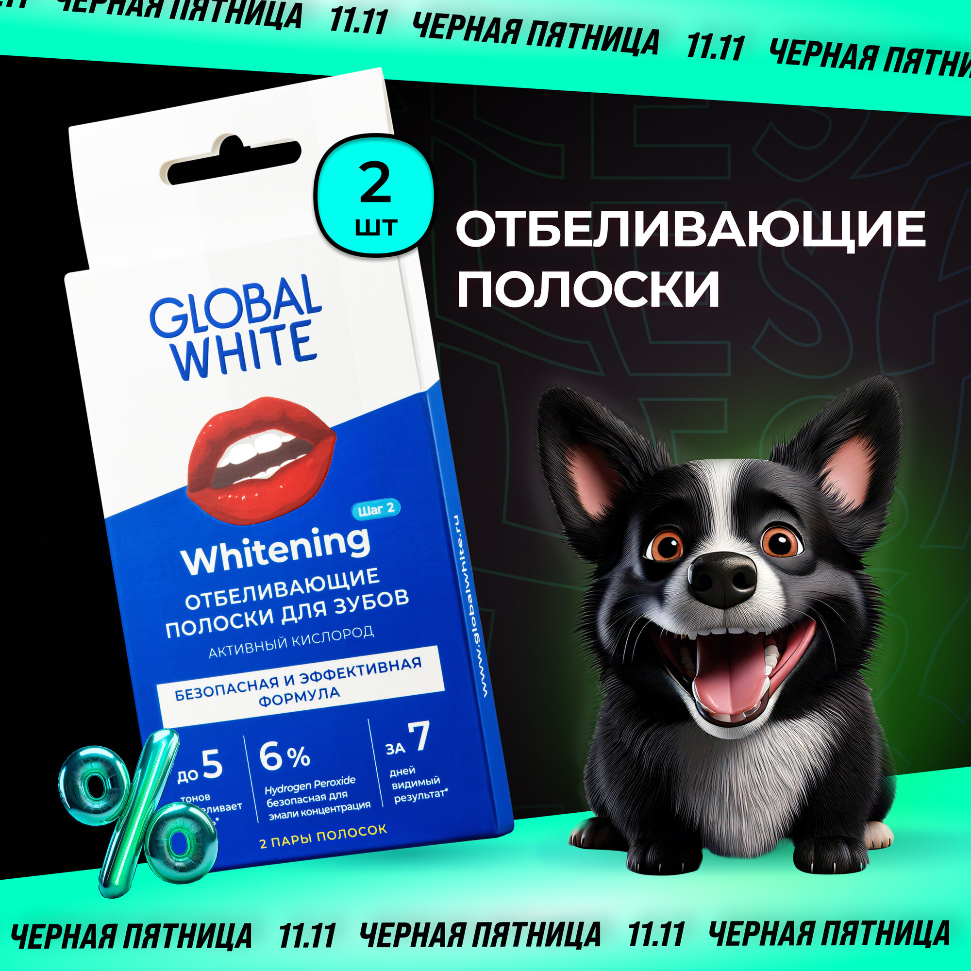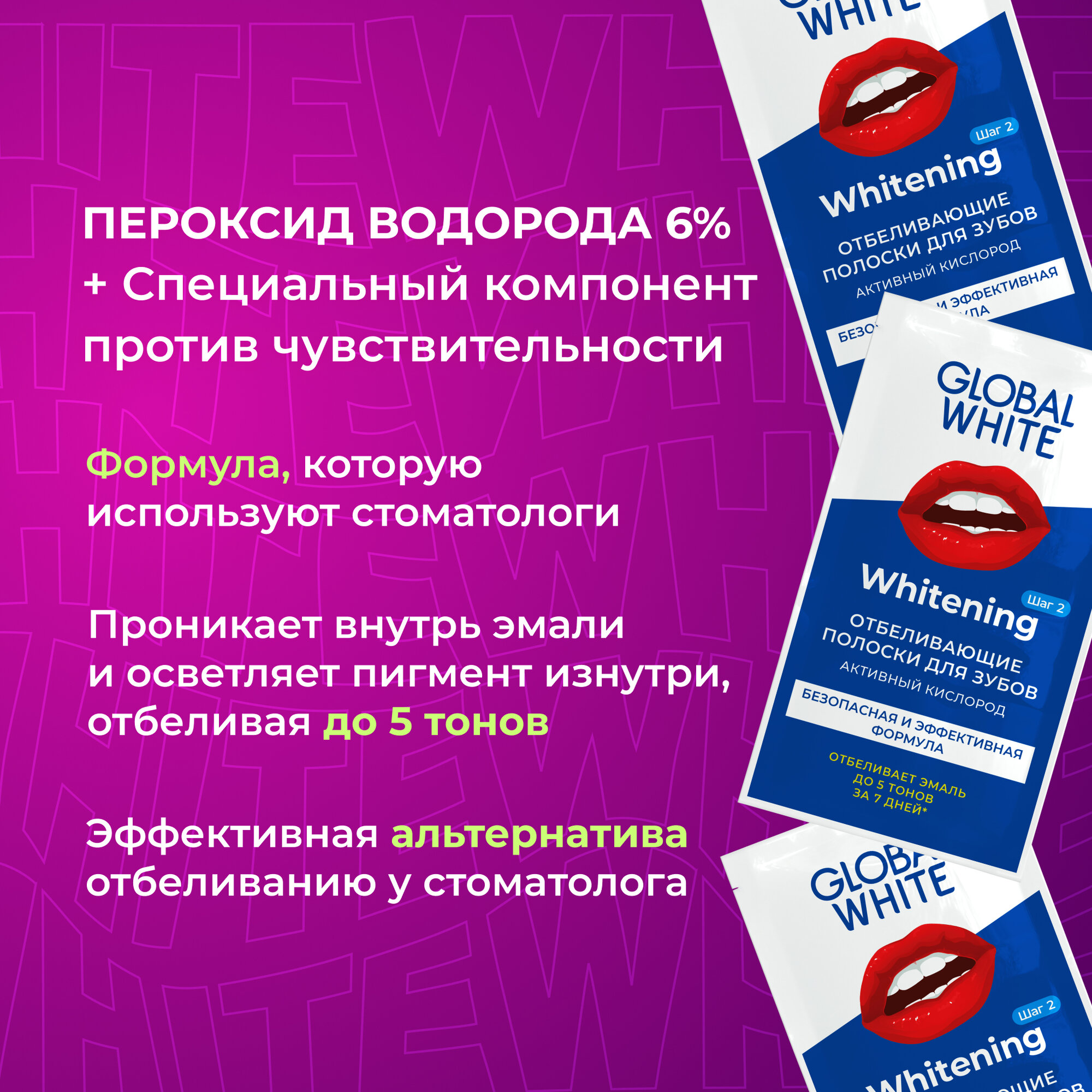 GLOBAL WHITE Отбеливающие полоски Отбеливающие полоски для зубов Активный кислород 7 дней