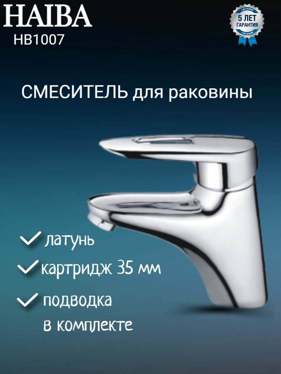 Смеситель для раковины Haiba HB1007, монолитный излив, материал латунь, покрытие хром.